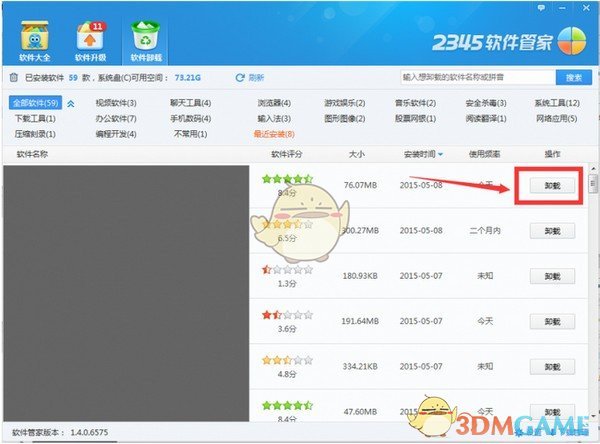 第三步:卸载软件。您跳至软件卸载界面后,可以选择想要卸载的软件,只需要点击“卸载”按钮,软件管家就会帮助您完成软件的卸载,在卸载后软件管家还会提示你是否有软件残留,您也可以通过软件管家删除这些残留