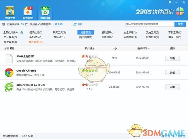 2345软件管家包含3000余款正版软件,可智能识别电脑中已经安装的软件,用户只需轻轻点击,便可完成卸载,对令用户苦恼的卸载残留更是提供了“强力清扫”功能,使卸载真正一步到位。