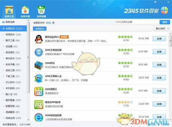 对于软件安装使用中较为粗心或喜爱偷懒的用户,2345软件管家将所有软件进行了精细地分类,用户根据个人偏好进行排序,免除了软件选择过程中的苦恼;