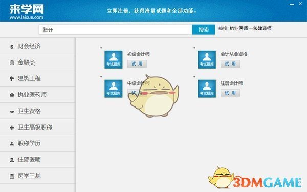 来学网电脑版是上海来学网教育科技有限公司精心研发的一款题库软件,涵盖题库答题、学习笔记等功能。覆盖九大类(财会经济、金融类、建筑工程、执业医药师、卫生资格、卫生资格高级职称、职称学历、住院医师和医学三基),近千个考试科目。