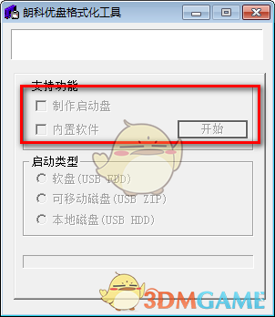 朗科官方出品的U盘格式化工具,主要功能是制作启动盘,也就是说可以把U盘做成可启动的电脑功能的,而且它还可以制作内置软件,把软件制作到u盘启动盘里,比如一些需要dos下启动的软件,也可以直接默认制作启动盘,支持usb fdd软盘,usb zip可移动磁盘,usb hdd本地磁盘,对于有软盘启动需求的电脑可以使用此工具来制作。