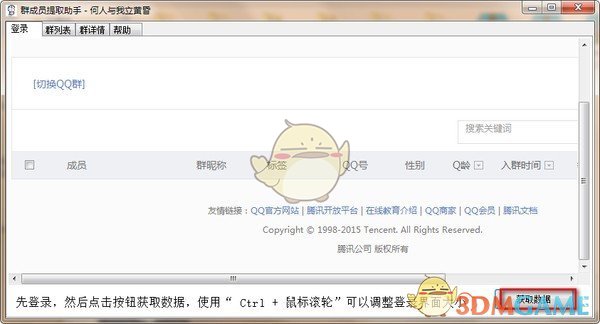 2.登录到QQ后,打开软件,然后单击软件右下角的“导入数据”,以将QQ组数据导入软件。