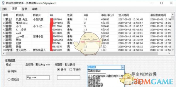 下载《群成员提取助手》这是一款可以一键提取qq群中用户群消息的实用工具,而且会自动生成EXCEL表格,比较适合一些营销人员使用,有需要的快来下载吧!