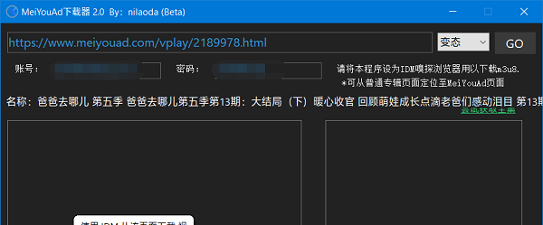然后再次解析,程序左下角将出现 从该页面下载视频 悬浮框,此时即可使用idm完成后续操作