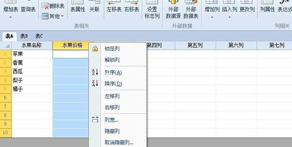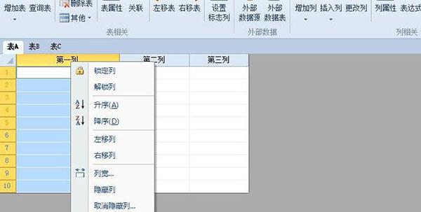 2、鼠标左键选择需要修改的列,右键选择列的属性选项菜单