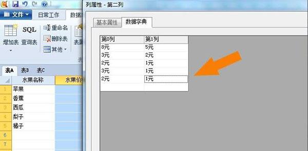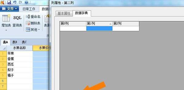 4、在弹出的【列的属性】窗口上,选择【数据字典】选项,并选择多列选项