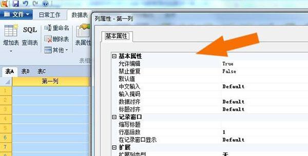 3、在弹出的列的属性窗口上,可以看到列的参数名称