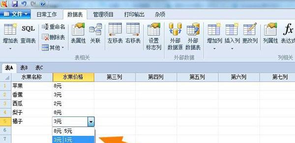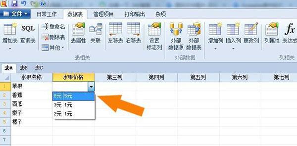 1、打开Foxtable软件,新建一个表格,比如水果名称表,如下图所示: