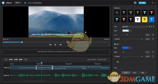 如果你想要更改字幕的字体、颜色、大小、透明度,甚至给字幕加边框、描边、阴影,或者更改字幕位置等,都可以在字幕大师内置的免费字幕编辑工具中直接修改。字幕大师还提供了丰富的字幕样式模板,只需要点击一下就可以轻松制作个性字幕,让你的视频字幕看起来更加炫酷。