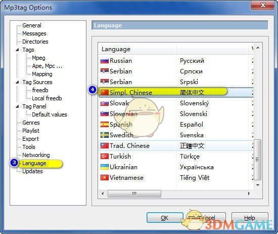 Mp3tag默认是显示英文界面的,切换简体中文语言可以通过“Tools-Options-Language”选择简体中文。
