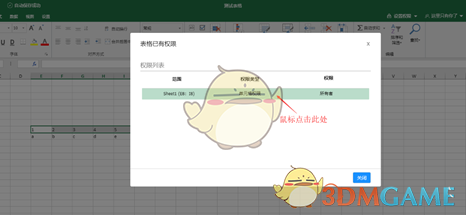 a) 打开表格选择您需要设置权限的区域,点击右上角设置权限