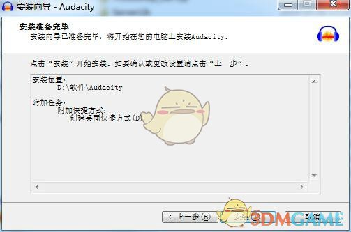 6、安装向导已经装备完毕,将开始在你的电脑上安装Audacity,点击安装开始安装