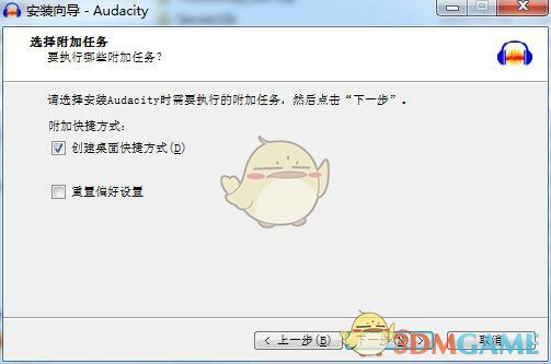 5、选择好安装Audacity时需要执行的附加任务,勾选“创建桌面快捷方式”,点击下一步