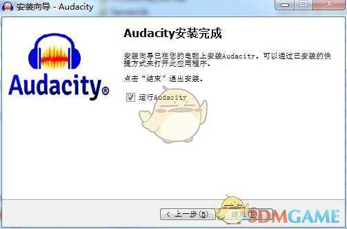 7、Audacity安装完成,可以通过快捷方式打开此程序,也可以点击结束退出安装