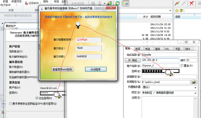 3、支持查看Outlook、FTP等桌面软件窗口下的密码