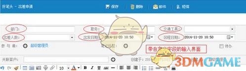 还是以出差申请为例,把相对固定的字段设置成了自定义字段