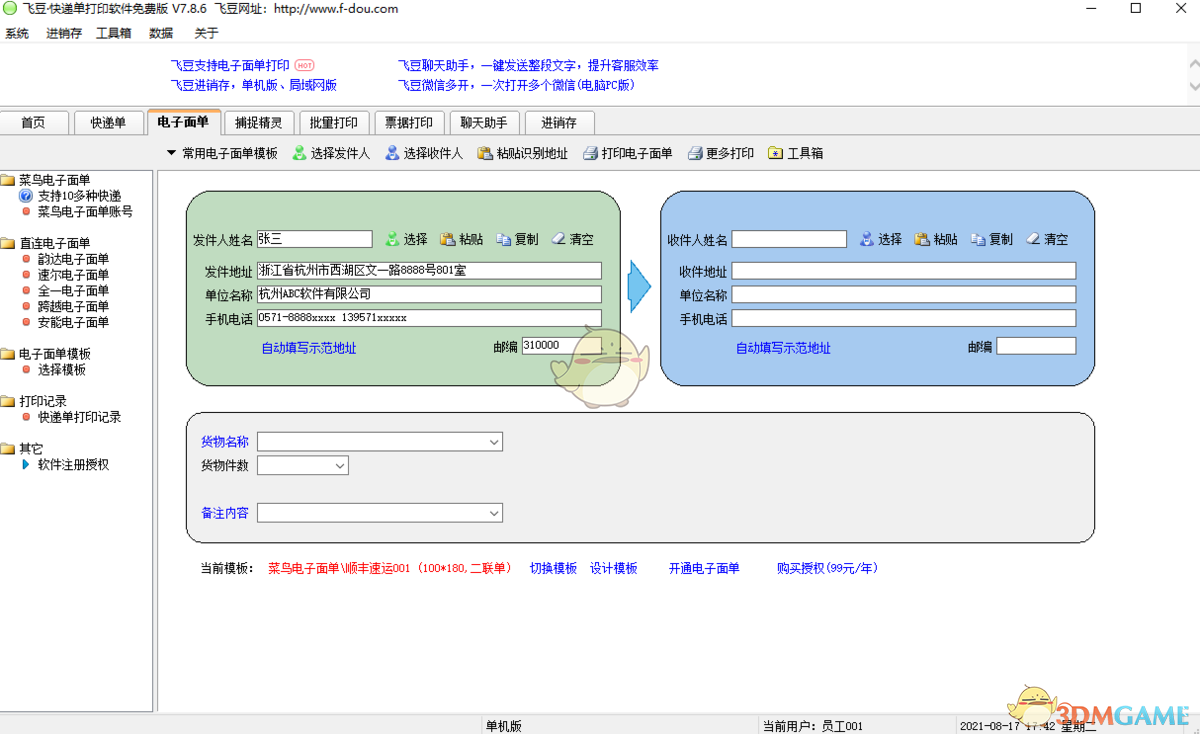 飞豆快递单打印软件里的单个打印快递单是永久免费的功能,解决传统手工填写面单,效率低下的痛点。