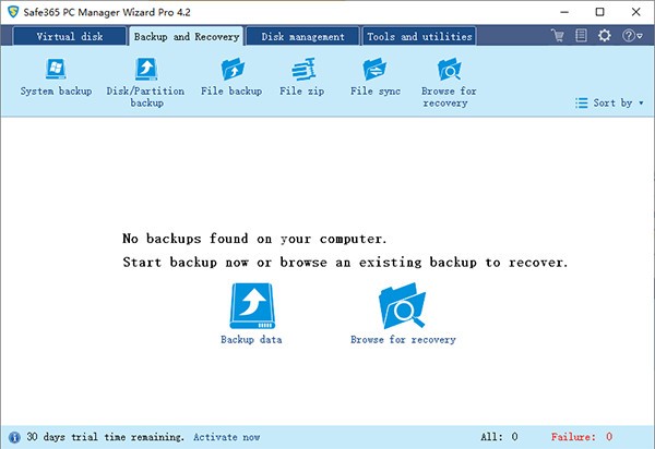 最佳家用计算机数据备份解决方案,适用于Windows 10 / 8.1 / 8/7 / vista / XP的计算机备份系统,数据/文件备份,应用程序。备份数据后,硬盘崩溃或意外删除几乎不会那么痛苦。借助内置的备份和恢复功能,您可以在几分钟内将整个Windows系统备份恢复到原始位置或新位置,备份整个磁盘或卷,备份特定文件,文件夹或网络共享文件。