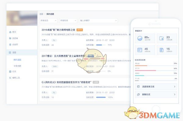 选题管理、任务管理、即时通讯、消息通知、资源库、文稿工具、图片 工具、视频工具,送你一把协同工作的瑞士军刀