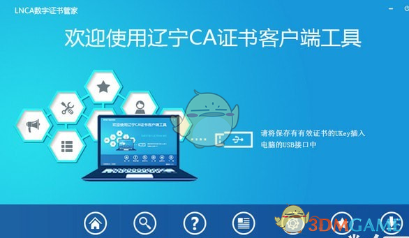 “LNCA数字证书管家”工具提供三个功能:自助年检,证书管理,删除证书。