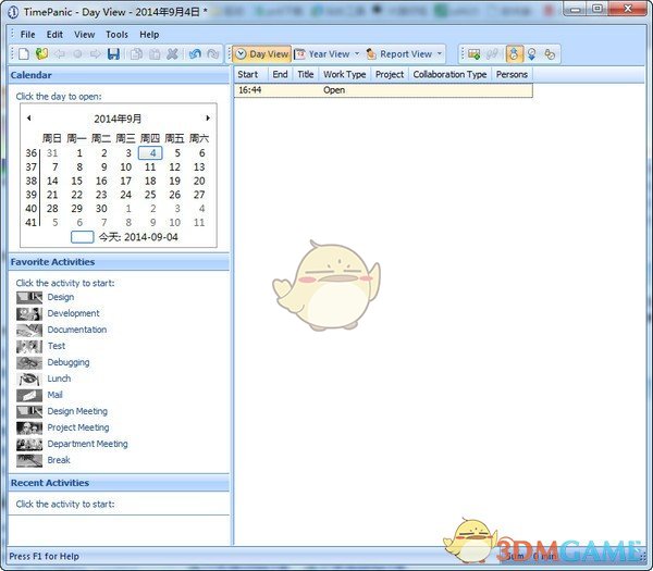 包裹在一个用户友好的界面,显示一个日历和样品与喜爱的活动(例如:设计,开发,文档,测试,调试)。新的活动项目可以通过指定一个属性和结束时间,把任务名称、工作类型、项目、合作型、参与人数。