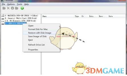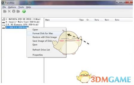 2、插入准备好的U盘,U盘数据要转移,打开TransMac,右键要制作启动盘的U盘名称,选择“Format Disk for Mac”,将u盘格式化成Mac下的格式;