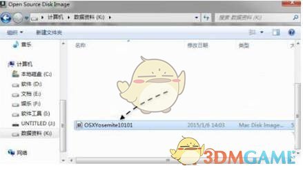 7、选择已经准备好的OS X.dmg镜像,点击打开;