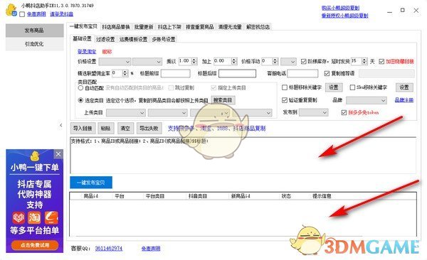 此页面支持淘宝、天猫、1688、拼多多和抖店商品进行发布