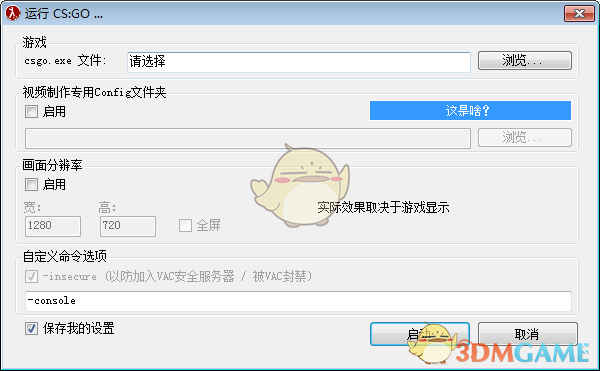 二、进入CSGO启动界面,输入CSGO的打开位置,点击启动。