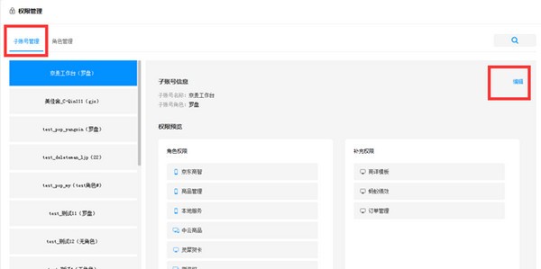 a.为子账号分配权限:点击“子账号管理”,选择对应的子账号,点击“编辑”。