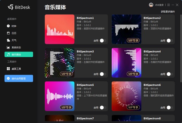 BitDesk是一款Windows平台PC端的桌面工具软件,有时钟、日历、天气、系统状态、音乐媒体和实用工具等6种分类的20+款桌面插件。