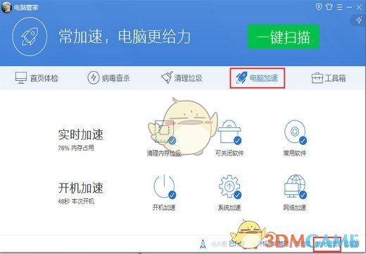 1、在QQ电脑管家中恢复时间同步服务(如下图所示)在电脑加速页面有个“优化记录”,