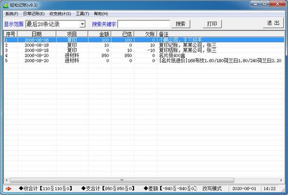 该软件集理财记账查询统计于一体,是各种店面及生意朋友的特好帮手,供各种店面门面房、小型企业、单位部门大小金库、生意朋友及家庭等记流水账使用,该软件操作简单,显示直观,收支、统计、老顾客查询瞬间完成。软件设有隐私保护密码,凭密码修改或删除老账,凭密码设置使用权限或显示项目。v9.0版本中加入了作者常用的3个精品工具(算式计算器/项目预算器/悬浮记事本)。欢迎广大朋友传播使用。