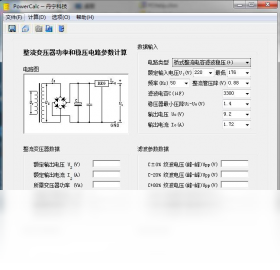 PowerCalc专门用于小功率工频变压器整流滤波电路的变压器功率的快速确定。使用它,你能快速搞定常用整流电路的变压器功率。可以计算给出8种常用的基本整流电路和最常用的3种整流稳压电路对变压器的功率要求,对一般应用已经够了。