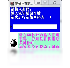 如果孩子们想自己设置关机前的时间总量,就必须运行软件,但如果不能正确输入密码,电脑将继续计时。如果三次输入密码错误,电脑将关机。