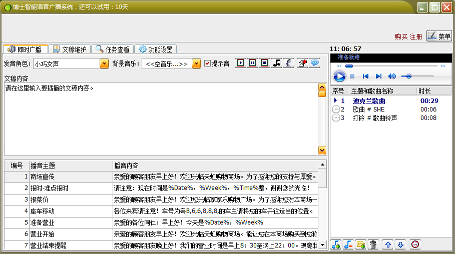 6、定时广播时,可以选择各国的播音角色来播放各国的语言,专业而又准确。