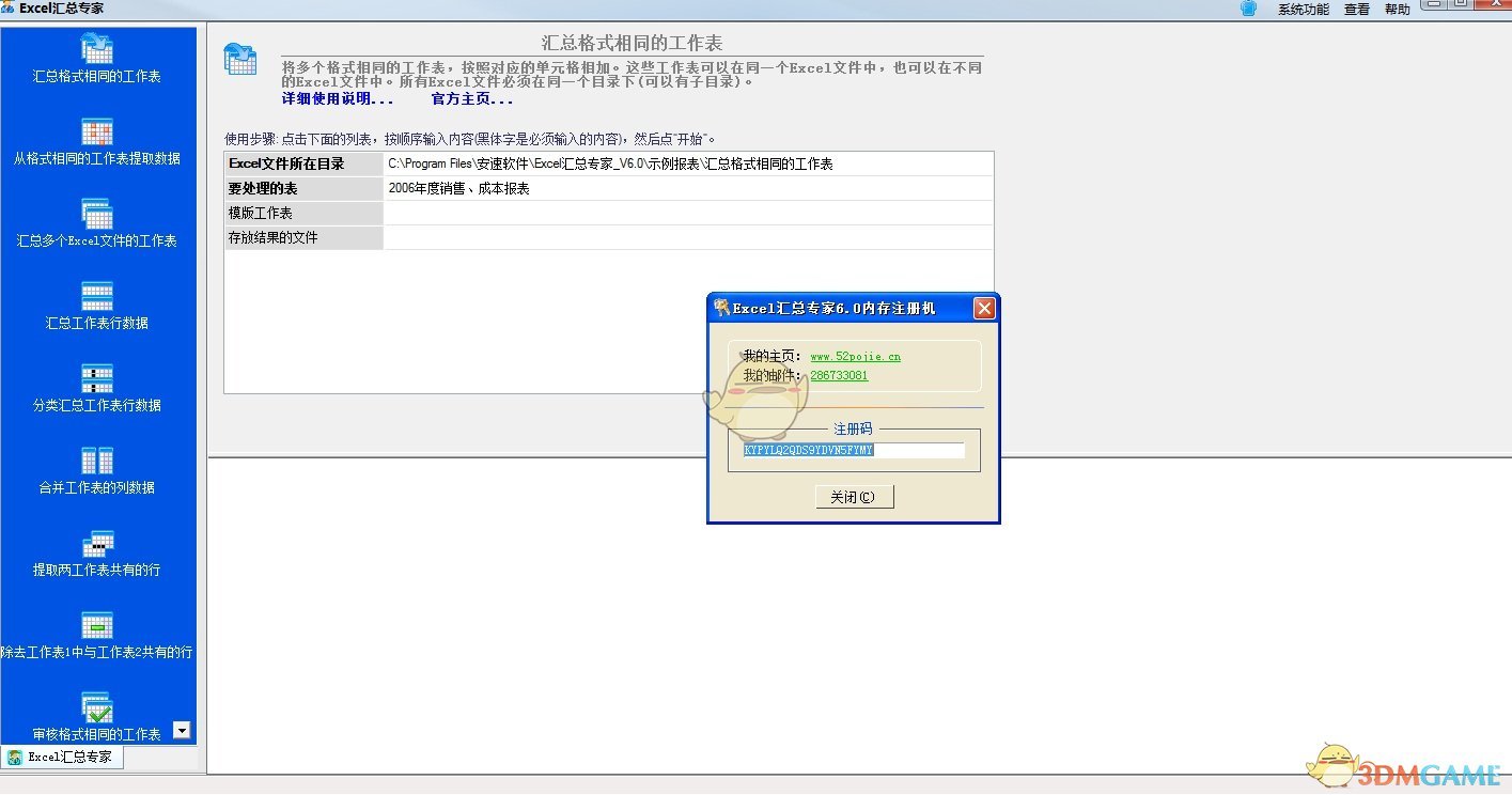 “Excel汇总专家”是一款共享软件,您可以先下载试用,觉得满意后再付费成为注册用户。本软件在未注册之前会有“一次只能汇总3个Excel工作簿”的功能限制,如果您在试用后决定一直使用下去,请通过本站向软件开发者支付 398.00 元/套的注册费用,以获得该软件的使用授权和软件开发者提供的技术支持与服务。