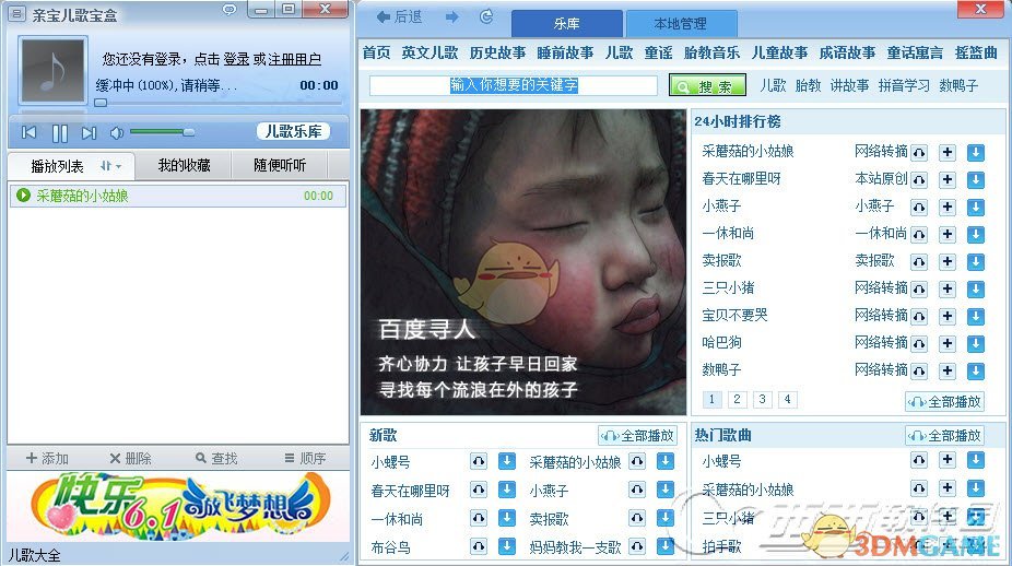 儿歌MP3下载到本地电脑,可传输到mp3、手机、pda等设备。