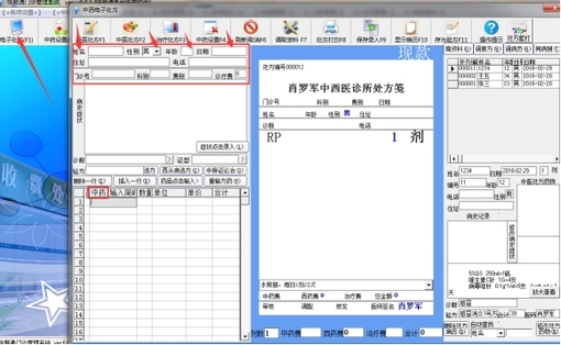 6.病史症状记录和开方药在同界面---边看病史记录患者症状,边开处方 细致,放心,杜绝误开漏开。