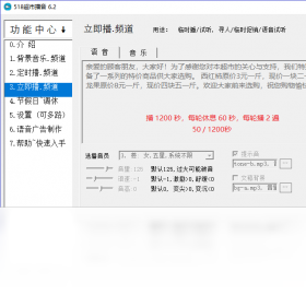 518超市播音软件,518谐音“我要发”,一款超市广播软件,超市定时播音系统,超市语音播报软件。广泛用于商场、超市、健身房、游乐场、幼儿园、工厂。汇集优质中英文语音库,接近真人发音。含背景音乐、定时播、立即播三个不同优先级的频道。高优先级频道播出时,低优先级频道自动降低音量或静音,频道切换时带有淡入淡出效果。通过将电脑音频输出连接至功放,即可打造一套超市播音系统。