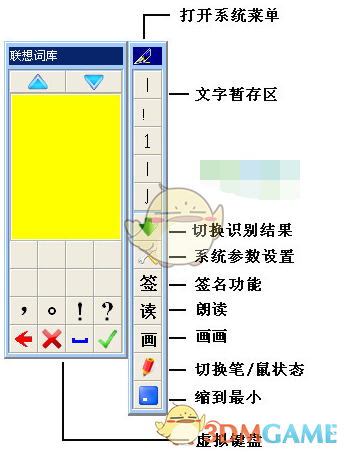 启动手写板硬件后,即可进入手写识别软件,您将看到在电脑屏幕的右上角出现如下画面: