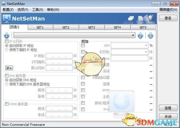 NetSetMan(网络IP切换工具)v5.0.6.0是一个简易实用,功能强大的工具,你可以设置五组不同的网络参数值,让使用者可以针对不同的网络环境,而调用不同的参数,只要使用NetSetMan,就可以让我们省去了许多时间,以及繁杂的网络设置步骤,有喜欢的小伙伴快来下载吧!