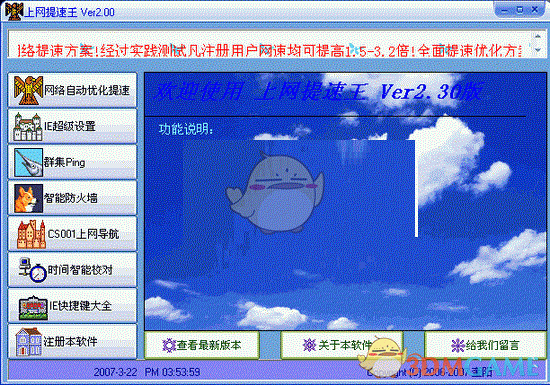 实践证明,凡注册用户网速可提高到原来的1.5-3.2倍!上网提速王官方版支持各种上网接入方式。如14.4K-56K拨号网络、ISDN网络连接、ADSL(基于PPPOE协议)、Cable Modem、通过局域网(LAN)接入因特网、笔记本无线上网等上网方式。本软件还能修复网速不稳定、上网经常掉线等疑难杂症。给您一个稳定和高速的上网享受!