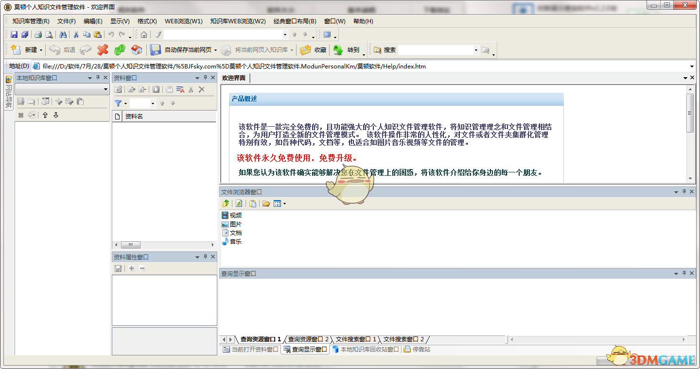 莫顿个人知识文件管理软件最新版是一款完全免费的,且功能强大的个人知识文件管理软件,将知识管理理念和文件管理相结合,为用户打造全新的文件管理模式。 该软件操作非常的人性化,对文件或者文件夹集群化管理特别有效,如各种代码,文档等,也适合如图片音乐视频等文件的管理。