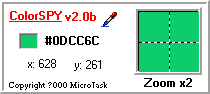 ColorSPY是一个免费的32位窗口应用程序,用于获取颜色屏幕上当前鼠标位置下的任意代码。看到你喜欢的颜色,想知道颜色代码需要复制它。无论是超文本标记语言,RGB,Visual C++,Visual Basic或者汇编ColorSPY知道并显示它们。只要指出你的鼠标点击它,这就是你的代码。想知道这种颜色是不是浏览器安全,ColorSPY也可以帮助你!ColorSPY功能包括彩色托盘拾取器、彩色滴管、60x60放大倍率窗口,系统图标,颜色混合器和屏幕截图工具。