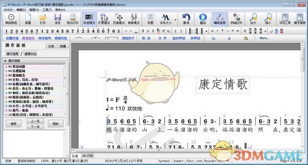 JP-Word是一款简谱编辑软件,它的特点是体积小巧,输入便捷,所见即所得,排版灵活,文本与乐谱可以混合排版 ,可以将乐谱输出到Word中进行再处理和打印。绿色软件,不修改注册表。