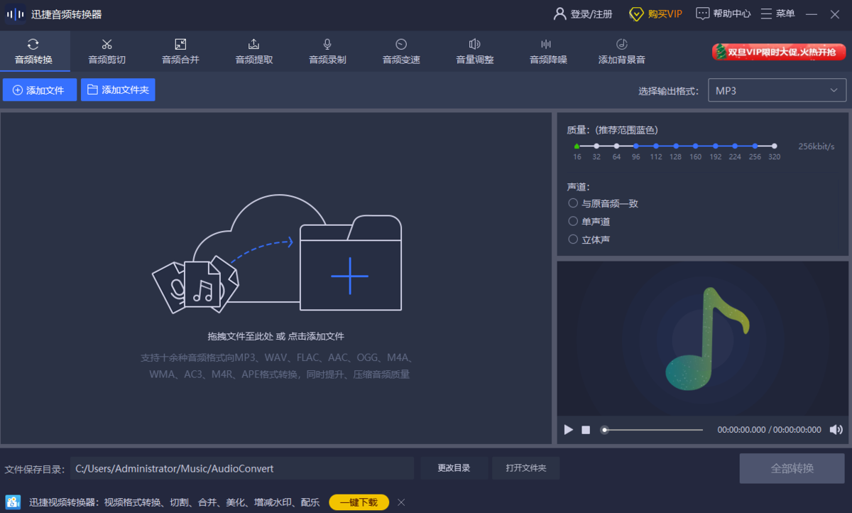 迅捷音频转换器最新版是一款非常不错的音频格式转换工具,迅捷音频转换器最新版界面美观,功能强大,操作也十分简单,该软件支持海量音频格式,可以帮助用户松的实现音频格式和音频格式之间的转换,且提供了音频剪切、合并、提取等功能,