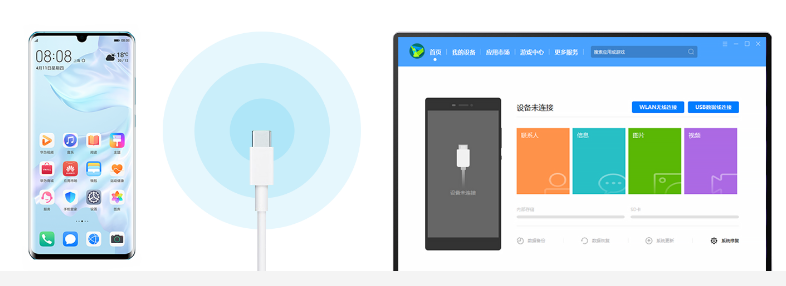 华为手机助手是华为官方为华为手机用户管理华为手机专门开发的软件工具,支持一键升级鸿蒙或EMUI、数据线连接电脑还原手机数据设备如照片、音乐、录音、视频、软件等。