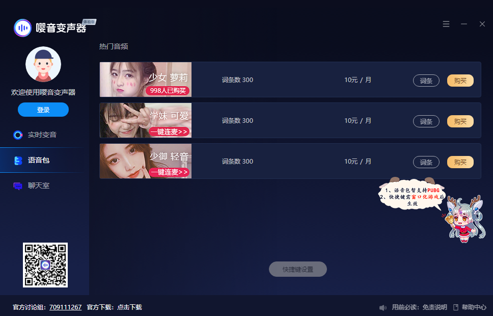 嘤音直播变声器是一款变声器软件,可以帮助使用者在和对方连麦电话或者直播式进行声音上的改变,为使用者提供海量的音效,音色选择。偶尔在社交软件交流时使用帮助活跃气氛。