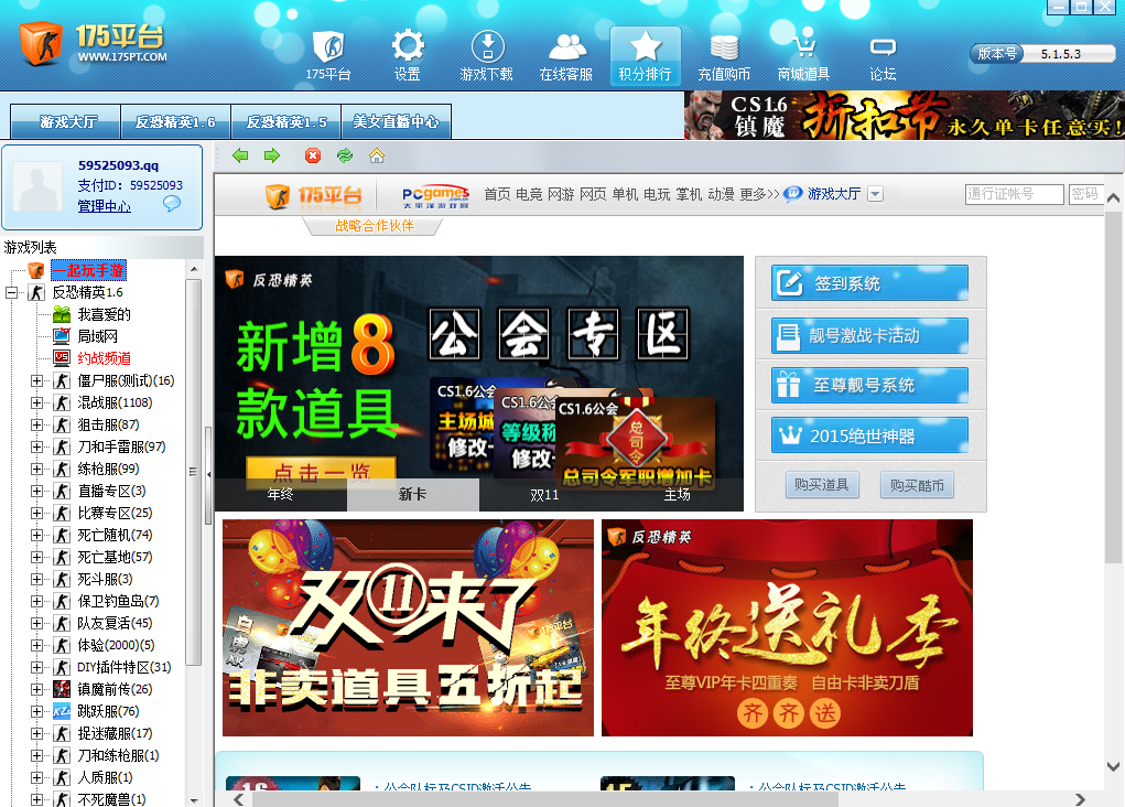 几千组CS服务器,按全国大区划分,随时进行多人网络对战;